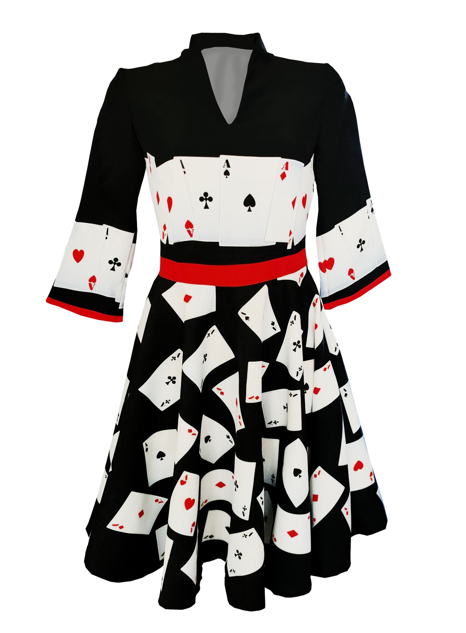Dress with knee-length full skirt. long sleeves.