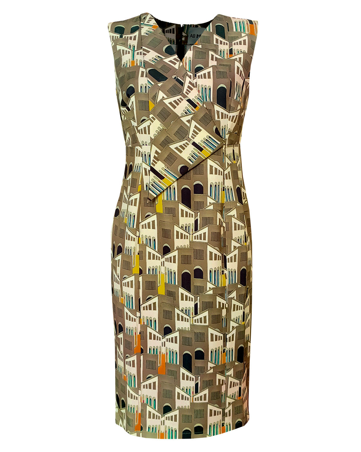 Abito a tubino lungo al ginocchio. Modello con scollo a V profondo e con un "reverse" tipo giacca.